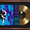 The display case is mounted on a 40×50 cm glazed frame ready to hang. It includes the reproduction of the cover of the LP “Love Gun” plus a vinyl similar to a gold record. All presented in an impeccable way on a black passpartout.