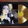 El display case está montado sobre un cuadro vidriado de 40×50 cm listo para colgar. Incluye la miniatura de una tapa del LP “33” más un vinilo simil disco de oro. Todo presentado de un modo impecable sobre passpartout negro.