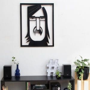 Esá realizado en madera de 3 mm de espesor y en el dorso del producto incluye una tira de luz LED a pila AA – Queda a 1 cm separado de la pared, lo que brinda acceso al interruptor para apagar y encender la luz LED.