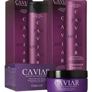 SHAMPOO Y ACONDICIONADOR PARA CABELLOS SECOS Y CASTIGADOS CAVIAR – FIDELITE x260 mL + MASCARA CAPILAR CAVIAR