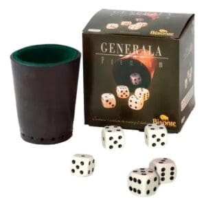 Ideal para esos días en los que nos quedamos en casa o podés llevarlo en tus viajes o en tus salidas al aire libre. Ideal para jugar en familia o con amigos. Prueba tu suerte y échate al juego. Contiene: 1 Cubilete Cuero – 5 Dados. Edad recomendada: +4 Años