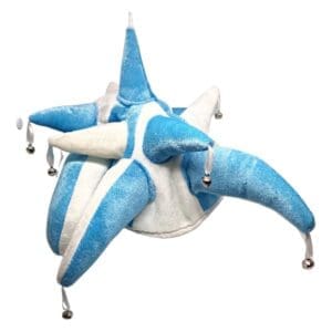 Gorro Argentina Cotillon Albiceleste Blanco y Celeste Mundial Qatar 2022 Diseño Arlequin de 13 Puntas en Fluor De Tela Sintético.