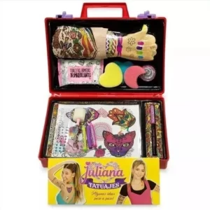 Incluye: – 1 Manga de Nylon Tatuada – 1 Lápiz Tatuador -3 Crayones para pintar los dibujos – Gemas autoadhesivas – Taponador – Stencil -Esponja -Tatuajes -Transfers en carpeta – Gel con Glitter – Sticker x 2.