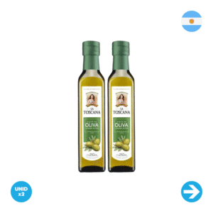 El Aceite de Oliva Virgen Extracana de La Toscana es una combinación ideal de varietales, con toques de Arbequina, Barnea y Coratina. Este aceite es rico y natural con suave aroma frutado. Se cosecha en la provincia de La Rioja, al pie de la Cordillera de los Andes, donde el clima y el suelo generan las condiciones perfectas para un gran sabor.