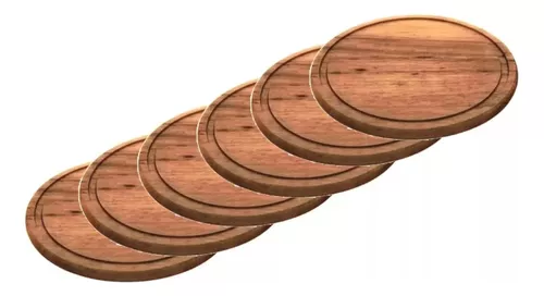 – Material: Algarrobo – Diámetro: 24 cm – Altura: 1.5 cm – Cantidad: 6 Platos – Excelente calidad