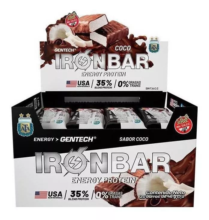 Barritas Proteicas – Gentech Iron Bar – Coco – 20 Unidades Sin Tacc