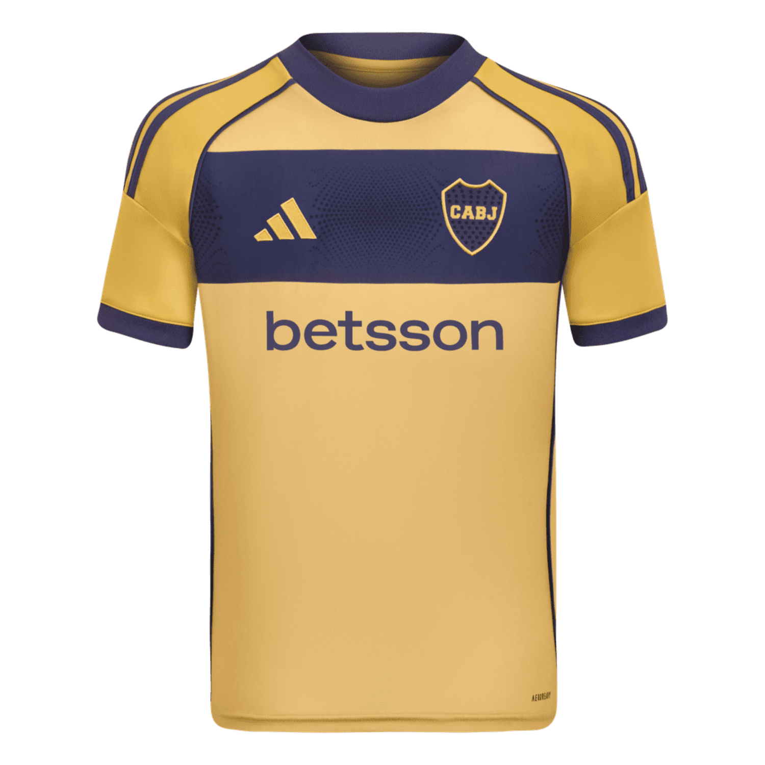 Es el color de los campeones. Por eso, resulta apropiado vestir a los jugadores de Boca Juniors en color dorado en la temporada en la que el club celebra sus 120 años. Diseñada para que los hinchas estén cómodos rindiendo homenaje en las tribunas, esta camiseta de fútbol adidas para jóvenes incorpora la tecnología de control de humedad AEROREADY. El detalle conmemorativo en la parte posterior del cuello proporciona el toque final perfecto.
