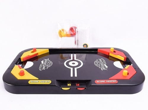 Multiplica el entretenimiento combinando la pasión del fútbol y la destreza del tejo de mesa, todo en un mismo juego! Para que tus días sean más divertidos y poder disfrutarlos en familia o amigos! Duplica tu diversión goleando! Mide aproximadamente 37 cm x 22 cm x 5 cm.