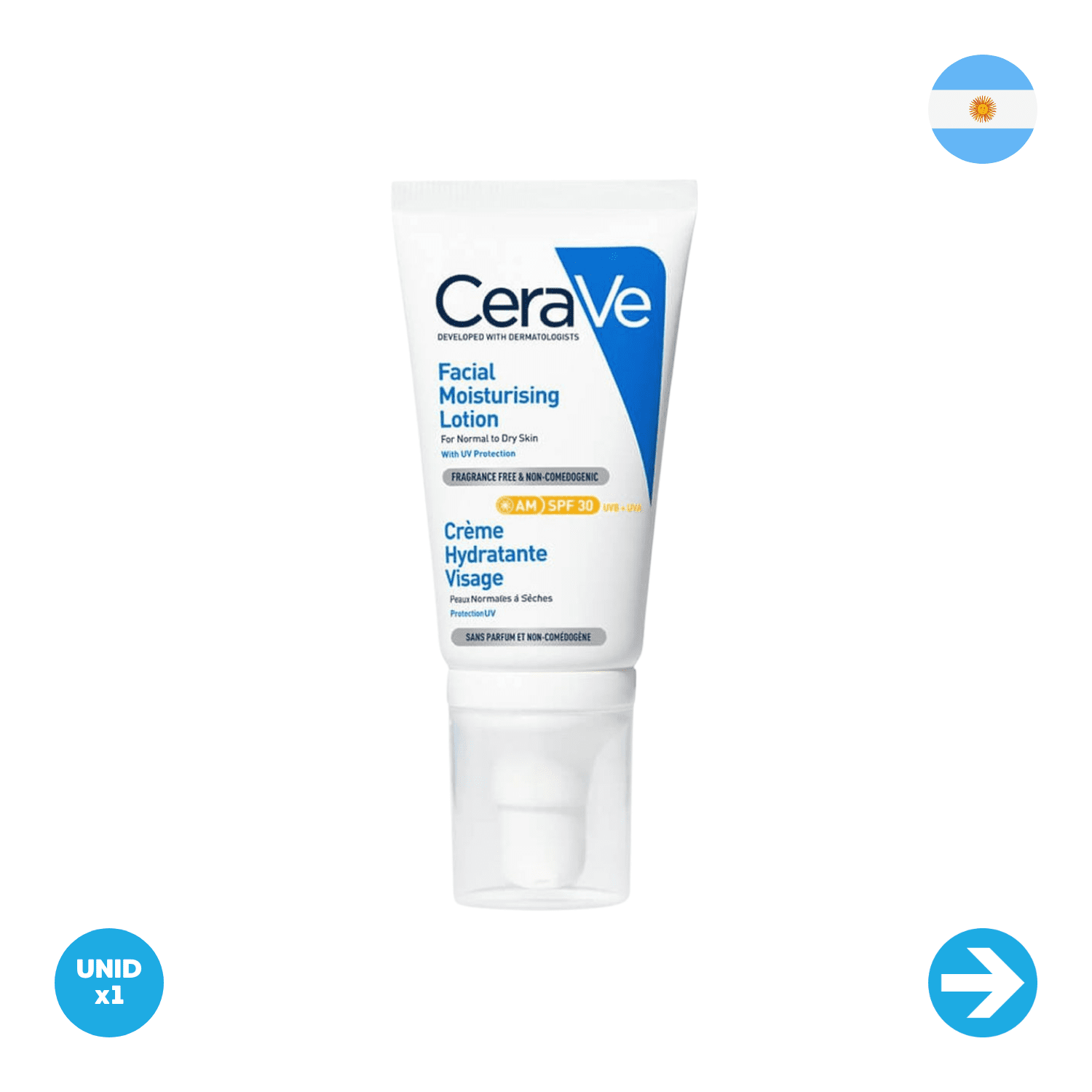Loción hidratante de rostro con FPS 30 formulada para hidratar y reparar la barrera protectora de la piel, mientras brinda una protección eficaz contra los dañinos rayos UV. Proporcionar una hidratación continua de 24 horas. Ideal para piel normal a seca.