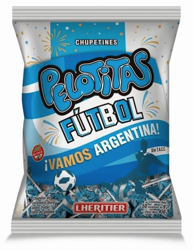 Chupetín de caramelo duro sabor frutal. Libre de gluten. Sin t.a.c.c. La bolsa contiene 50 Unidades de 9 gr cada una.