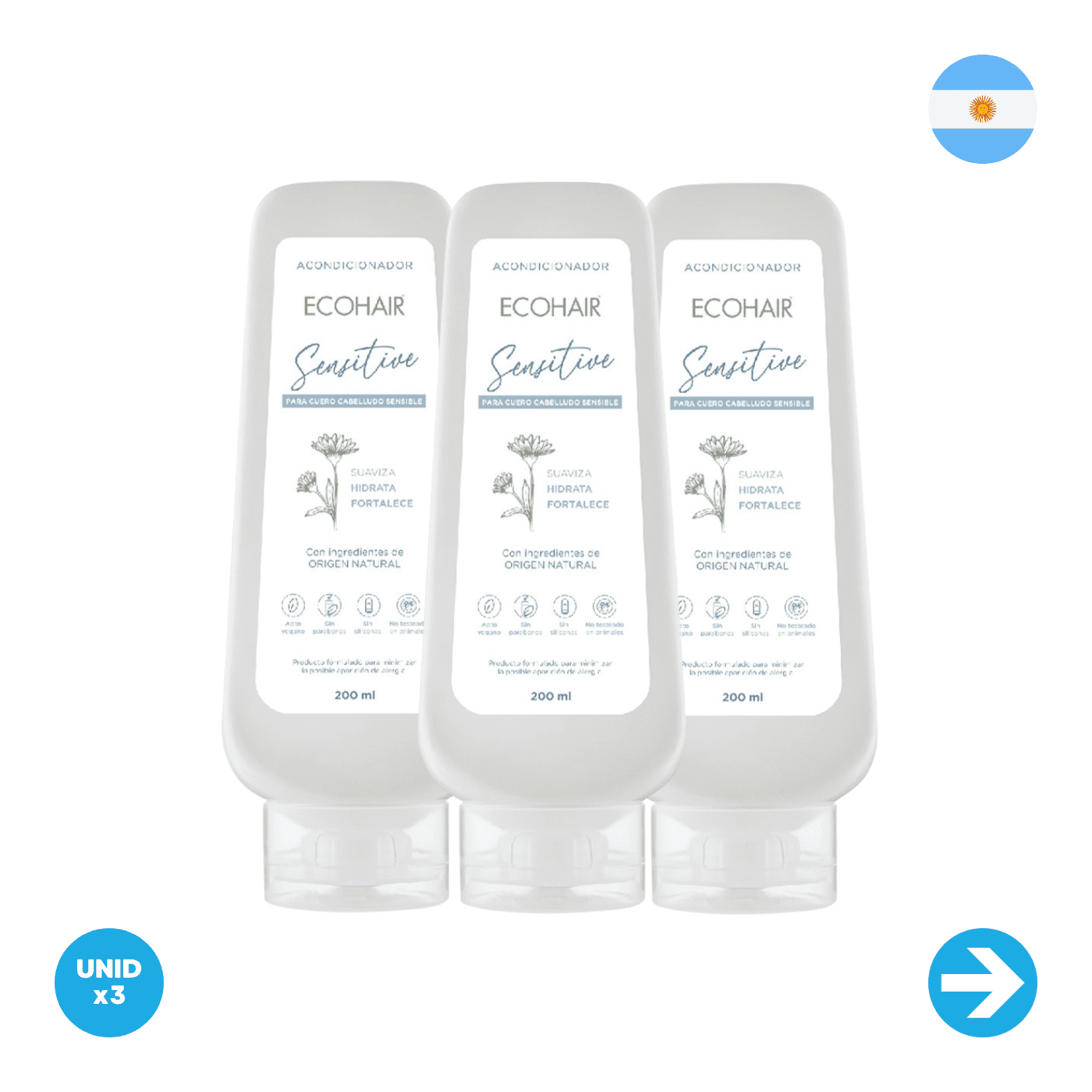 El Acondicionador Sensitive hidrata, suaviza y fortalece el cabello sin irritar el cuero cabelludo sensible. Su fórmula vegana y hipoalergénica, con aceite de coco orgánico, jarilla y proteína vegetal, nutre profundamente sin dejar residuos.