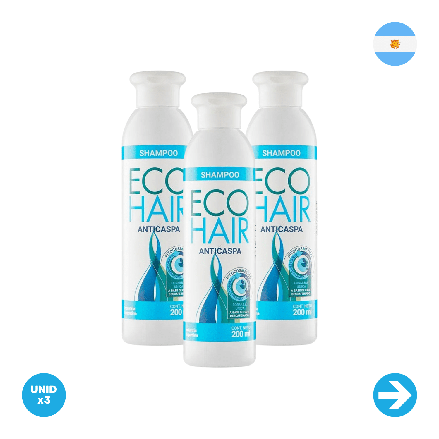 Eco Hair – Shampoo Control Anti Caspa – 200ml x3 Unidades
