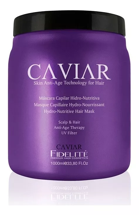 Tratamiento capilar anti-age con extracto de caviar, D-Pantenol y proteínas de trigo, seda, soja y arroz.