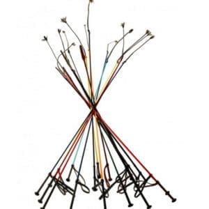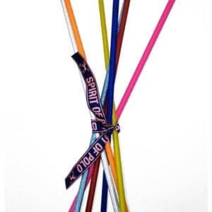 Those whips measure 110 cm. Composed of nylon and a leather handle. Large range of colors available.