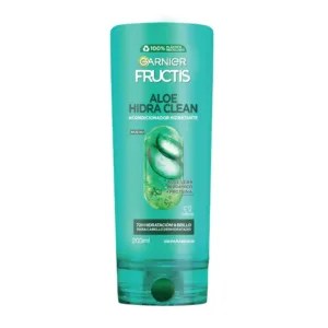 ¿Pelo deshidratado? Fructis Aloe Hidra Clean hidrata tu pelo hasta por 72hs. Con aloe vera orgánico, deja tu pelo más suave, ligero y con 47% más brillo. Sin parabenos. Sin siliconas. Garnier está comprometido con Green Beauty. El shampoo de Aloe Hidra Bomb tiene fórmula vegana, es Cruelty Free y sus botellas están hechas con plástico 100% reciclado. Probá la rutina completa de shampoo, acondicionador y crema para peinar. Consejo de uso: Aplicá el shampoo sobre el pelo húmedo masajeando suavemente. Dejá actuar y enjuagá con abundante agua. Usá el acondicionador y la crema para peinar de Aloe Hidra Clean para un pelo hidratado y brillante. Todos los productos de Fructis son reciclables. Enjuagalos, separalos y dejalos en un contenedor/campana verde o punto verde. TIP: si podés, sacales la etiqueta.