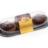 Bocaditos en blister de 3 unidades, rellenos de dulce de leche y 3 almendras bañados en chocolate semiamargo.