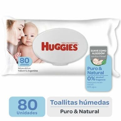Huggies – Toallitas Húmedas Puro y Natural – 80 Unidades