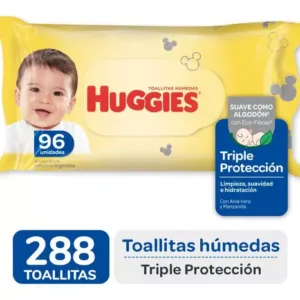 Las toallitas húmedas Huggies Triple Protection están diseñadas para solucionar la limpieza diaria. Tienen extracto de manzanilla y una delicada fragancia para la limpieza del bebé. También están hechas con Eco-Fibras, fibras naturales que limpian suavemente su piel.