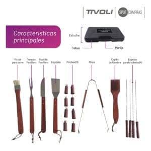 Juego Asador Tivoli Kit Asado Set Parrillero 14 piezas + valija