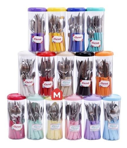 Juego de Cubiertos Carol – 24 Unidades + Frasco de Regalo Colores