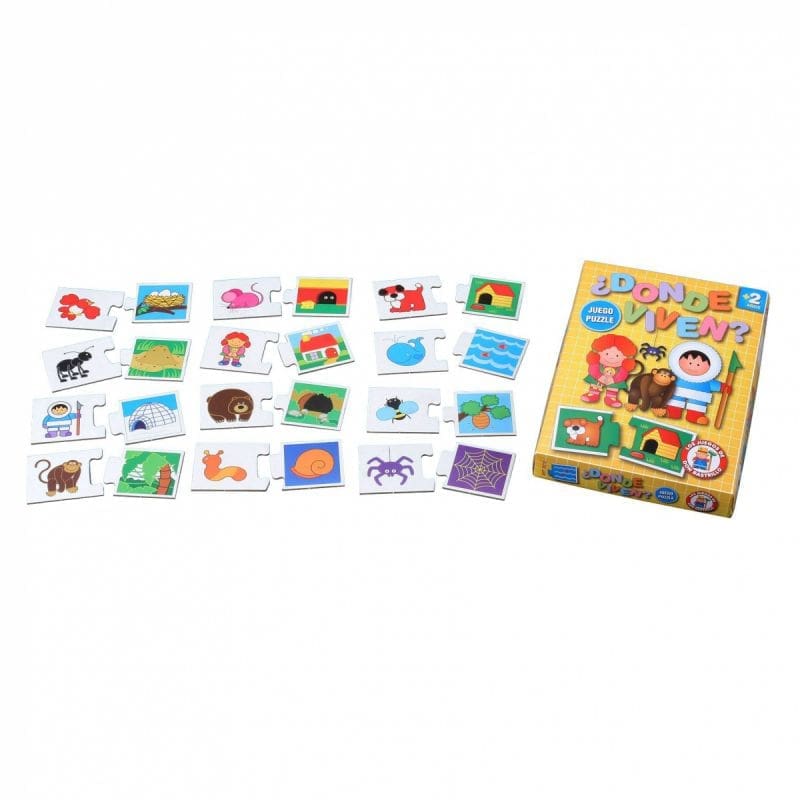 Un juego de coordinación en el que los niños deben relacionar personas y animales con el lugar donde normalmente habitan.edad + 2 | jugadores 1 ó + | medidas 180x240x35 mm