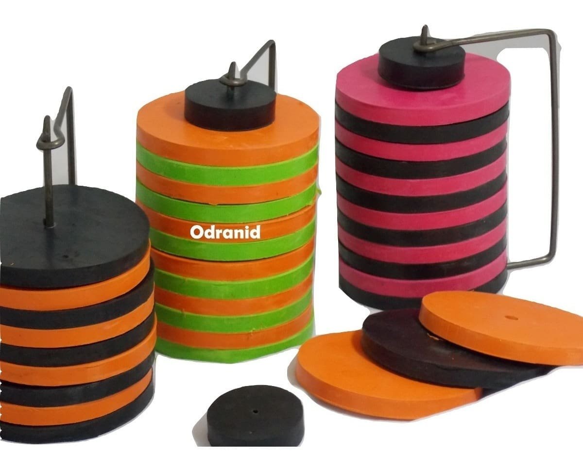 Excelente juego de tejos de goma. Para jugar en cualquier superficie. Ideal para toda la familia. El juego se conforma de 12 cilindros macizos de goma de 100x17mm, 6 negros y 6 de otro color junto con uno mas chico “bochin”. El juego pesa 3,5 Kg.