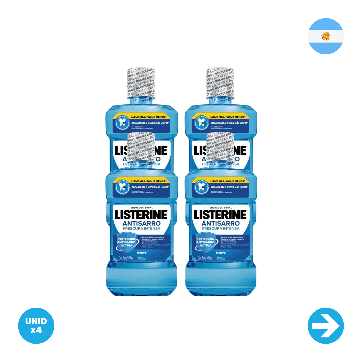 Listerine – Enjuague Bucal Antisarro Frescura Intensa – 500ml x4 Unidades