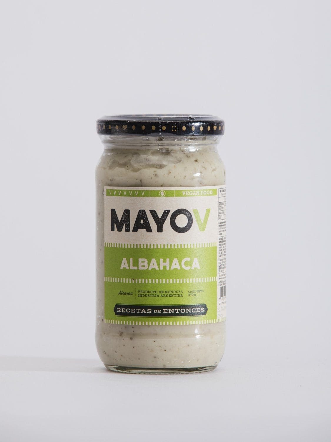 Mayonesa suave vegana elaborada con legumbres, aceite de girasol, un poquito se sal y jugo de limón. Sin huevo, sin leche, 100% vegana y sana. Con Albahaca fresca deliciosa.