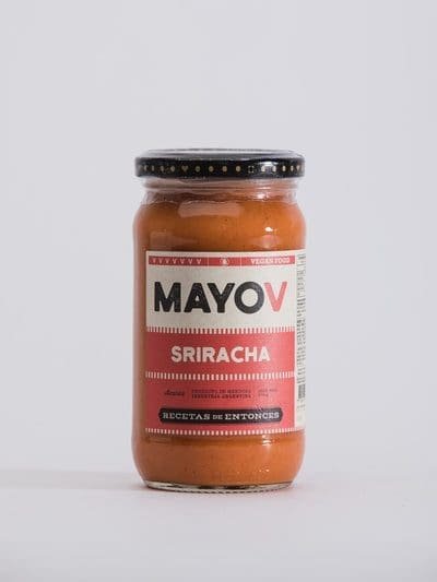 Mayonesa suave vegana elaborada con legumbres, aceite de girasol, un poquito se sal y jugo de limón. Sin huevo, sin leche, 100% vegana y sana. Con Sriracha picante!