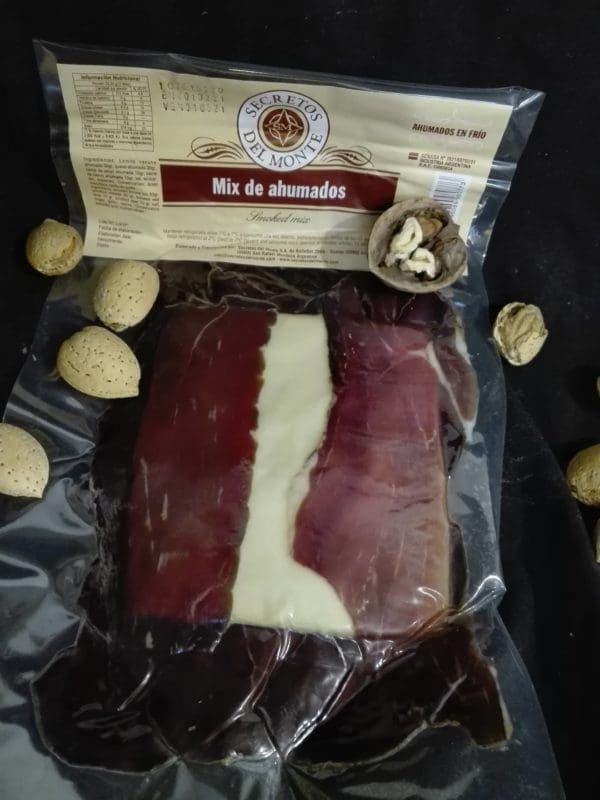 Mix de ahumados de la patagonia: lomito vacuno, queso ahumado, carne de jabali ahumado y carne de ciervo ahumado