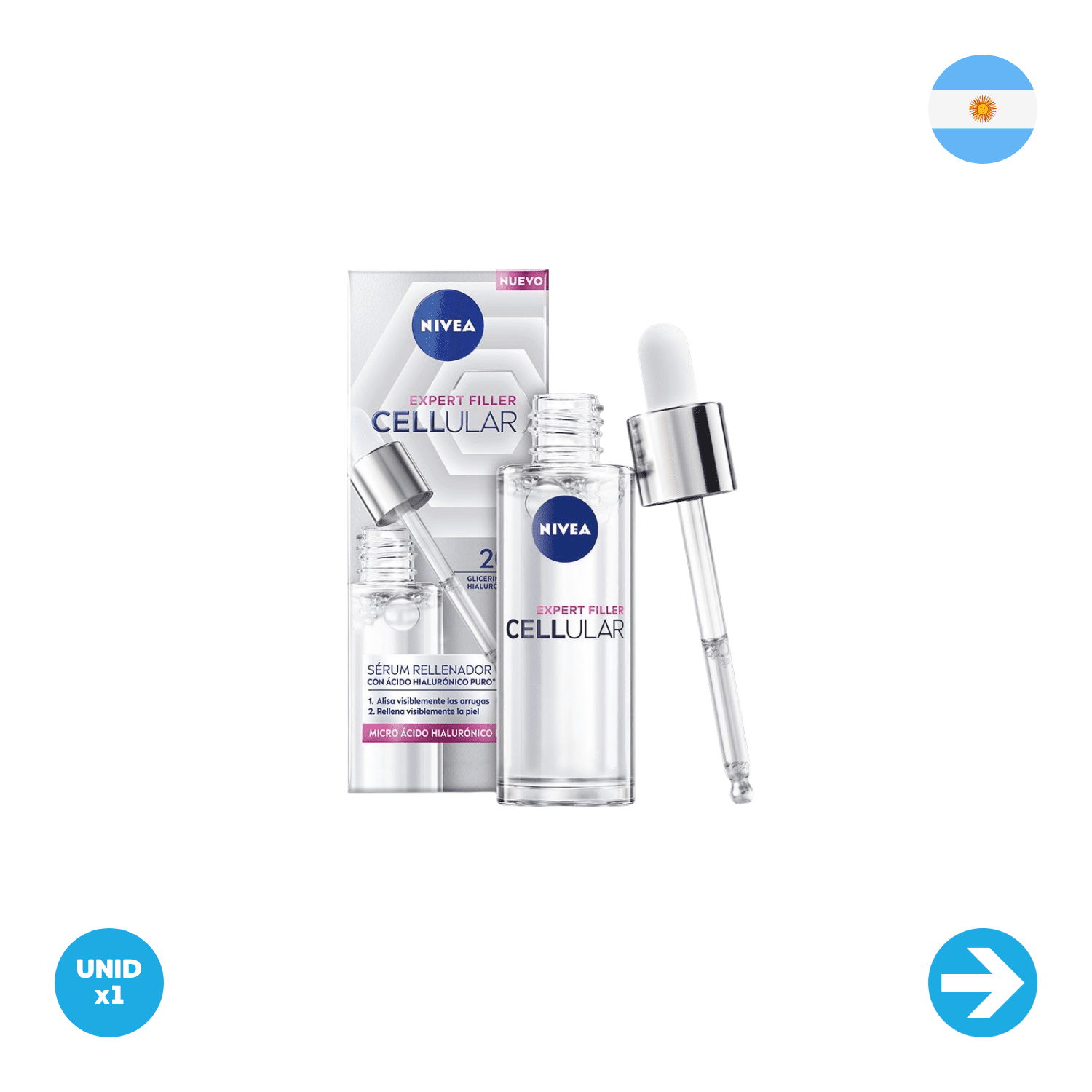 El Sérum Rellenador Nivea Cellular Expert Filler es una solución avanzada para activar las células de la piel y frenar los signos de envejecimiento. Formulado con Ácido Hialurónico, potente hidratante que alisa las arrugas y rellena visiblemente la piel.