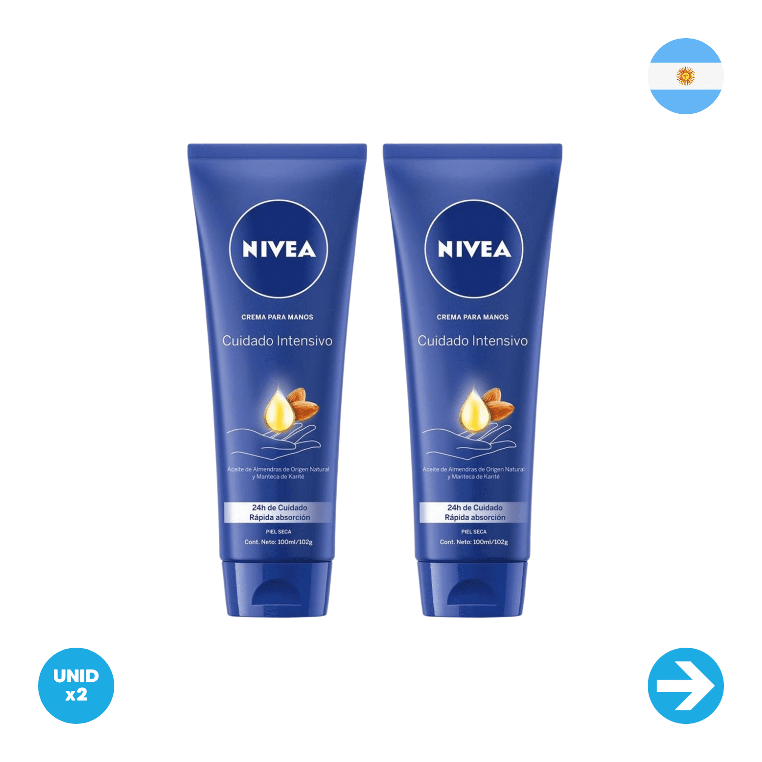 Tiene una fórmula enriquecida con Aceite de Almendras y de Origen Natural y Manteca de Karité. Te humecta profundamente y con una rápida absorción por 24 horas. De este modo, tus manos se encuentran más suaves y humectadas durante todo el día.