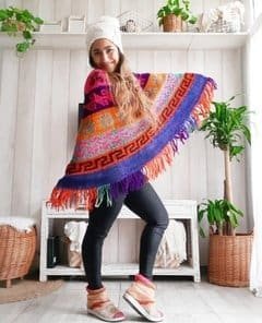unico talle IMPORTANTE: Todos los ponchos son diferentes , los colores que suelen tener son fucsia, violeta, verde , naranja. varian en los dibujos ya q es hecho a mano y al ser artesanal no repiten modelos.
