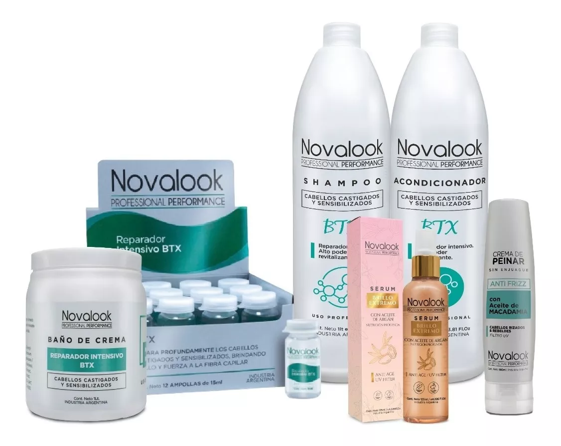 Incluye: 1 CAJA DE AMPOOLLAS 12 X15ML , 1 SHAMPOO 1LT, 1 ACONDICIONADOR 1LT, 1 SERUM BRILLO EXTREMO 125ML , 1 CREMA DE PEINAR 160ML, 1 BAÑO DE CREMA 1LT