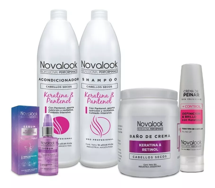 Combo x5: 1 Shampoo Keratina 1Lt + 1 Acondicionador Keratina 1Lt + 1 Crema de Peinar Keratina 160ml + 1 Baño de Crema Keratina 1Kg + 1 Serum Puntas Perfectas 60ml