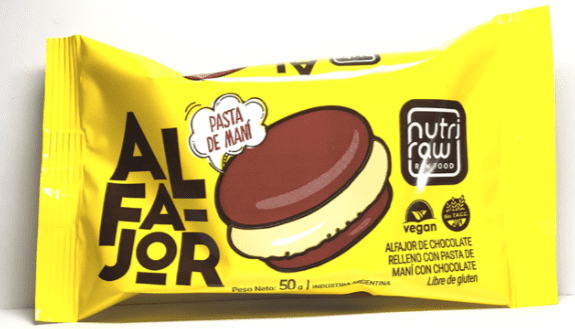Ingredientes: Chocolate, pasta de mani con Chocolate, mani, pasas de uva, almidon de maíz, harina de algarroba, azúcar de mascabo, sal marina.