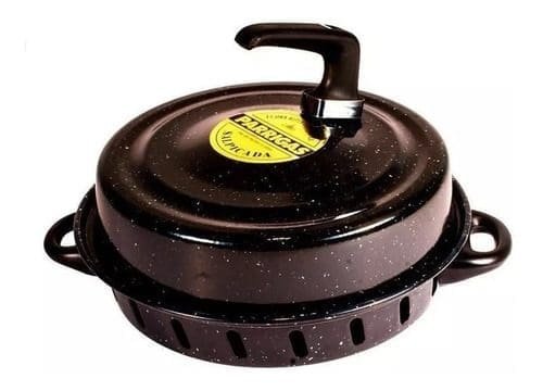 » Diámetro de 35 cm » Ahorra espacio y tiempo » Permite extraer naturalmente la grasa de la comida » Útil para camping e interiores » Fácil de usar y limpiar » Manija y asa de baquelita para evitar quemaduras