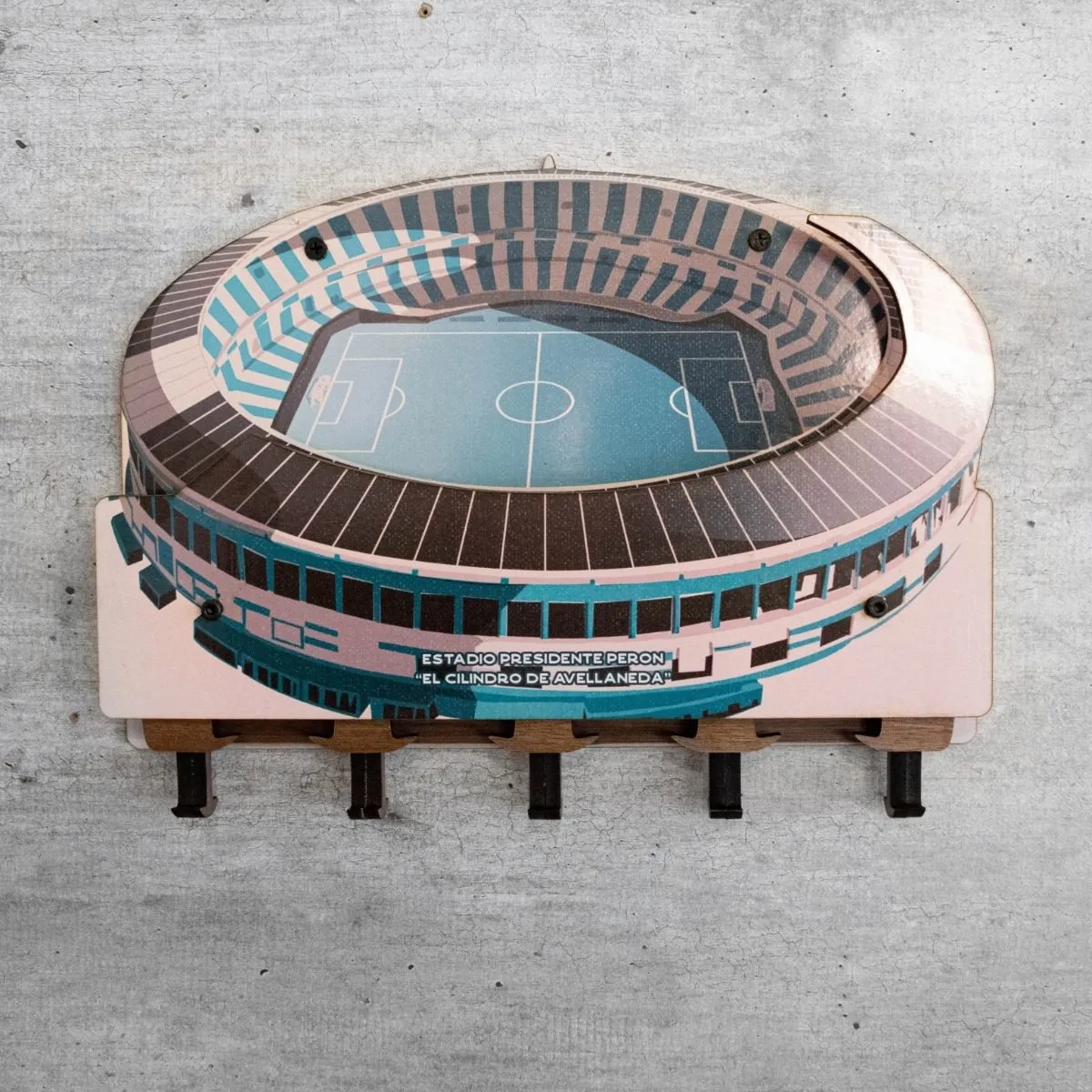 Portallaves y repisa multiuso de madera impresa de 5,5 mm.