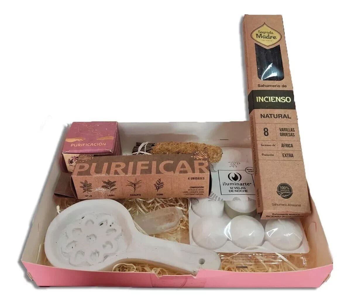 Kit Sahumado Incienso Purificación/Sanación – Línea Sagrada Madre – Este Kit Contiene: – 1 Caja Sahumerio Linea Natural Incienso Sagrada Madre – 1 Kit Humito Sagrada “Purificación” – 1 Caja Bombita Herbal “Purificar” x4 Unid Sagrada Madre – 1 Sahumo Limpieza Energética Sagrada Madre – 1 Pack de Velas de noche x 12 unid Iluminarte – 1 Sahumador Mandala |