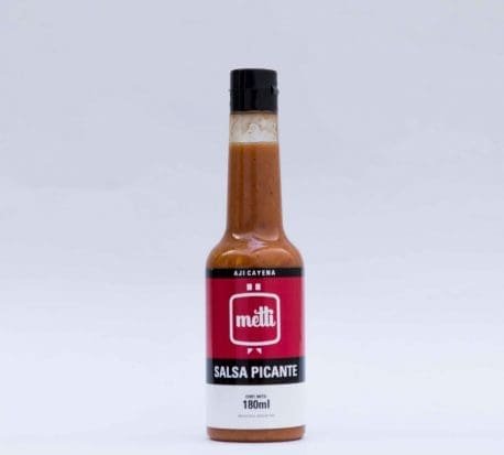 Dale un toque de picante a todas tus comidas con esta salsa picante de aji cayena. Ingredientes: Agua, Vinagre de alcohol, aji cayena, sal, ajo deshidratado, pimenton extra.