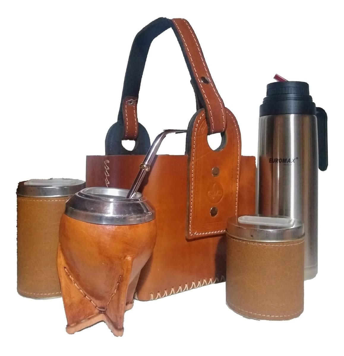Set Matero Completo Canasta Uruguaya Mate Cuero y Calabaza Marrón