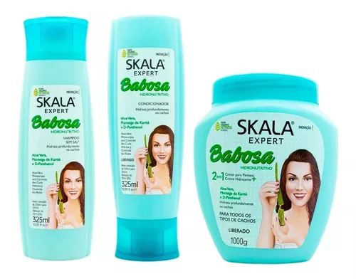 Skala Expert Babosa Shampoo Y Acondicionador es una línea de productos con Aloe Vera creada especialmente para atender a las necesidades del cabello rizado. Con Aloe Vera que hidrata el cabello. Además, posee Manteca de Karité y D-Pantenol – un trío perfecto. Sus rizos se quedarán ultra hidratados y con un brillo increíble.