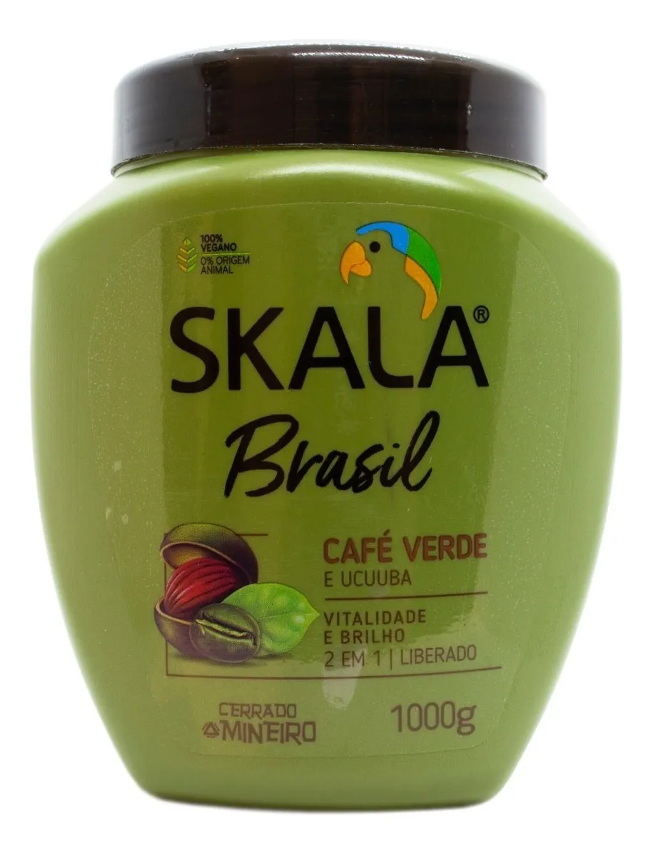 SkalaBrasil Café Verde proporciona vitalidad y brillo a cabellos opacos y débiles, actúa como fuerte emoliente proporcionando hidratación extrema. El café verde es un gran aliado para quienes buscan vitalidad, estimula el crecimiento del cabello de manera saludable.