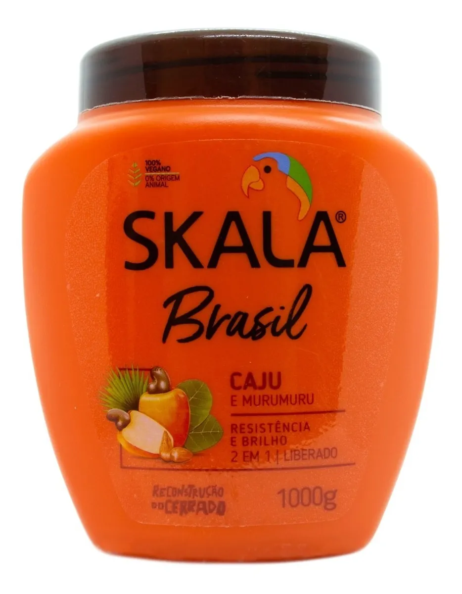 Skala Brasil Máscara Reconstrucción Caju Y Murumuru acelera la reparación, dando un alto poder de penetración en la fibra capilar reduciendo la porosidad de los cabellos.