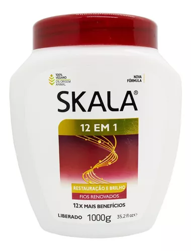 Skala para baño de crema y acondicionador La línea Skala 12 en 1, enriquecida con vitamina E y D’Panthenol, tiene una restauración espectacular y nutrientes vitales con propiedades que actúan directamente sobre el cabello para contrarrestar los principales signos de daño: sequedad, puntas abiertas, opacidad, rotura, aspereza, deshidratación, porosidad y pérdida de vitalidad.