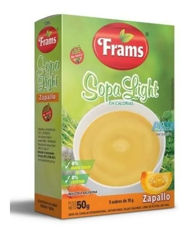Sopa dietética instantánea sabor Zapallo, reducida en calorías. Sin TACC. 50gr.