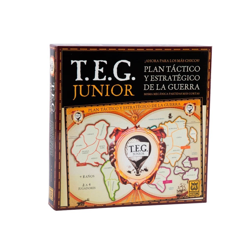 Con toda la adrenalina de este desafío de táctica y estrategia vas a poder reagrupar tus fuerzas y atacar países con un juego CREADO para vos. ¡Cumplí tu objetivo y divertite a lo grande! T.E.G. Junior es una adaptación infantil de T.E.G. Tradicional, cuenta con un mapa rediseñado con menos países, piezas más grandes y objetivos más simples.