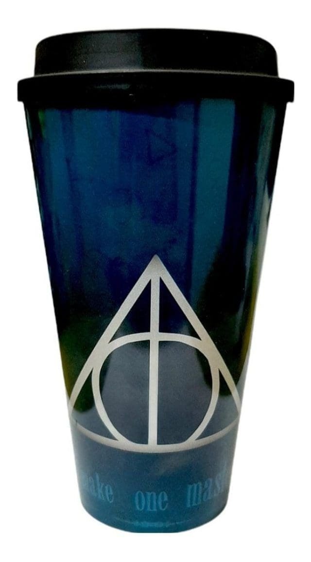 Vasos de plástico con tapa Harry Potter – Reliquias de la Muerte. Capacidad: 500 cc aprox. No apto para microondas.