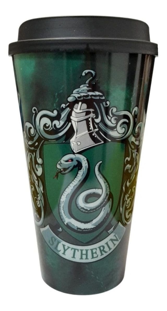 Vasos de plástico con tapa Harry Potter- Slytherin. Capacidad: 500 cc aprox. No apto para microondas.